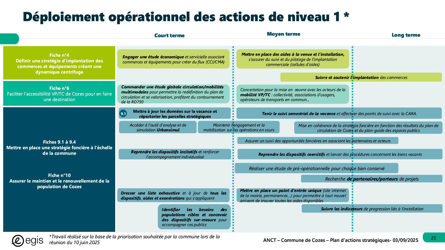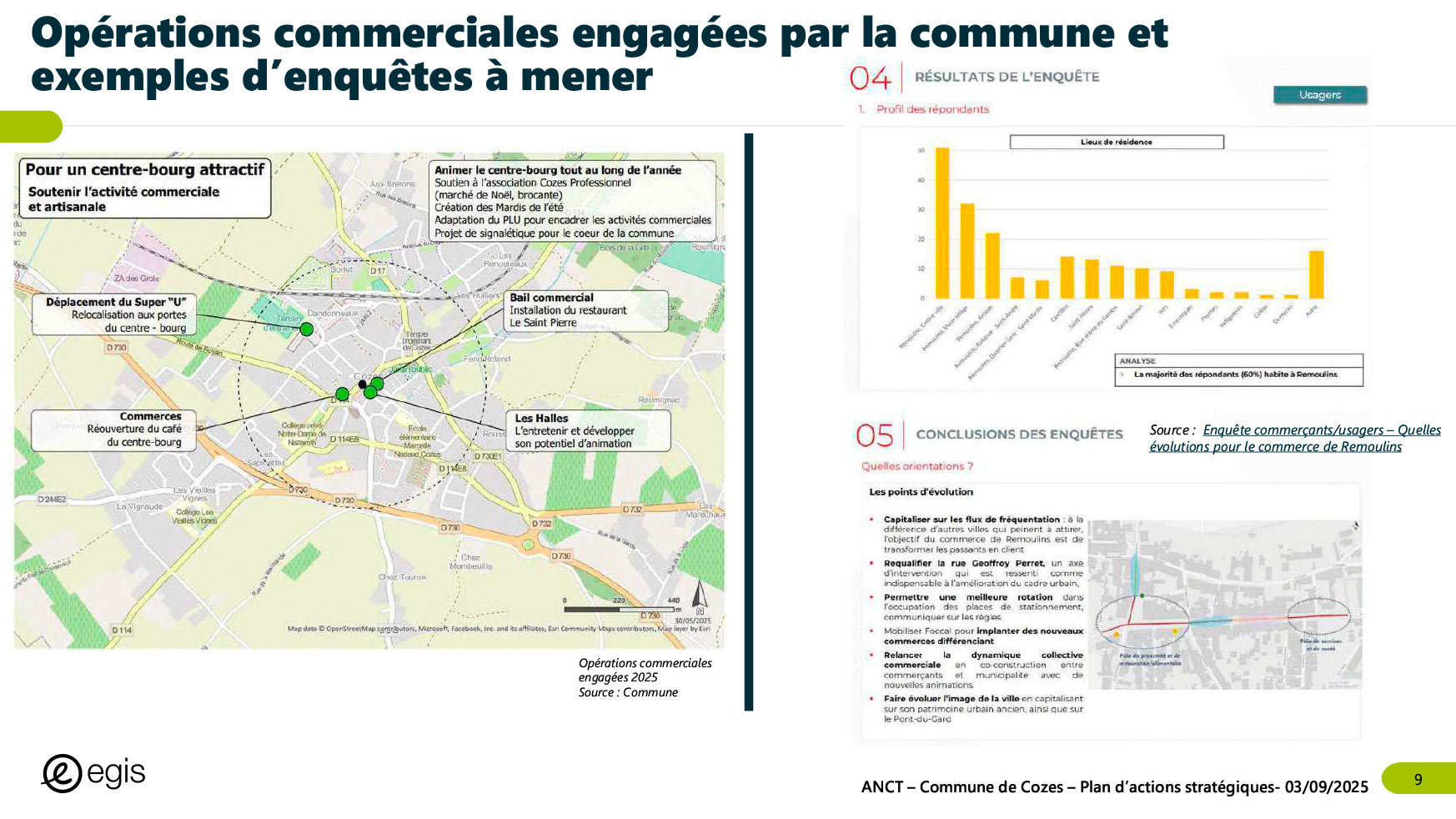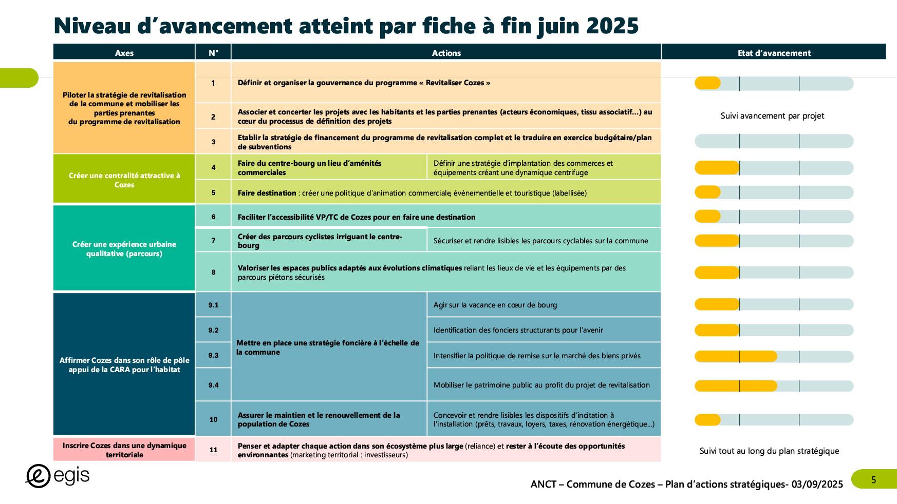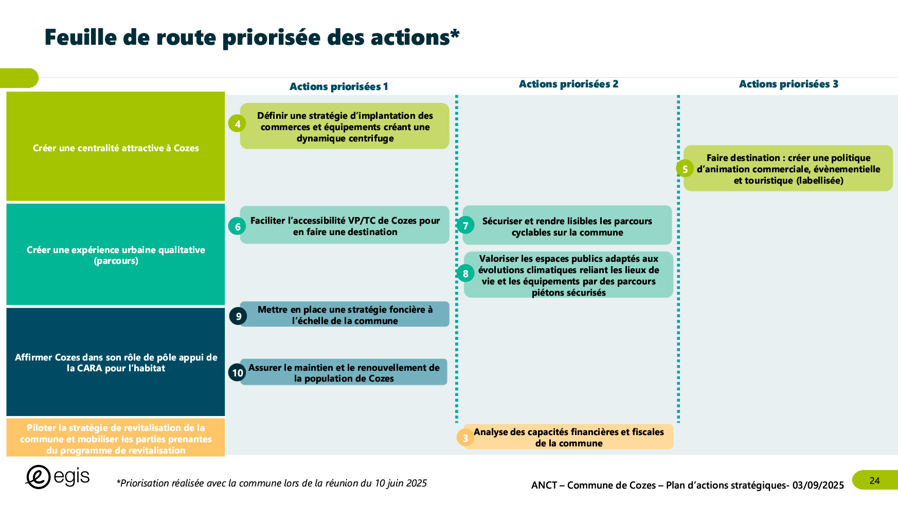 Dans le cadre du programme Villages d'avenir pour lequel la commune de Cozes a été lauréate en 2024, l'Agence Nationale de Cohésion des Territoires (ANCT) a financé une étude réalisée par le Cabinet EGIS ayant pour objet « Plan d'action pour la revitalisation de la commune de Cozes ».
