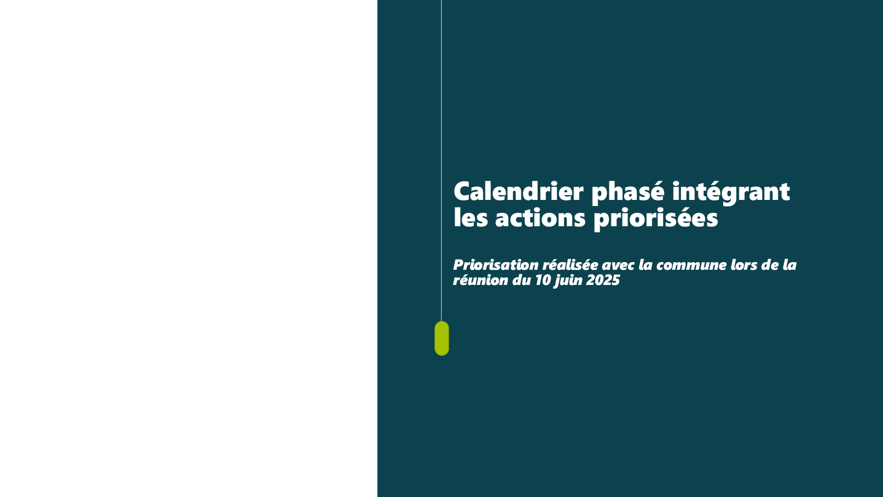 La restitution de cette étude qui vous a été présentée par le chef de projet « Villages d'avenir » le 7 octobre dernier en réunion publique, est un support pour les futures actions à mener qui seront priorisées par le Conseil municipal : éléments de réflexions proposant des pistes d'actions tant sur le volet urbanistique, foncier, que sur le développement économique, l'habitat, la mobilité, etc....