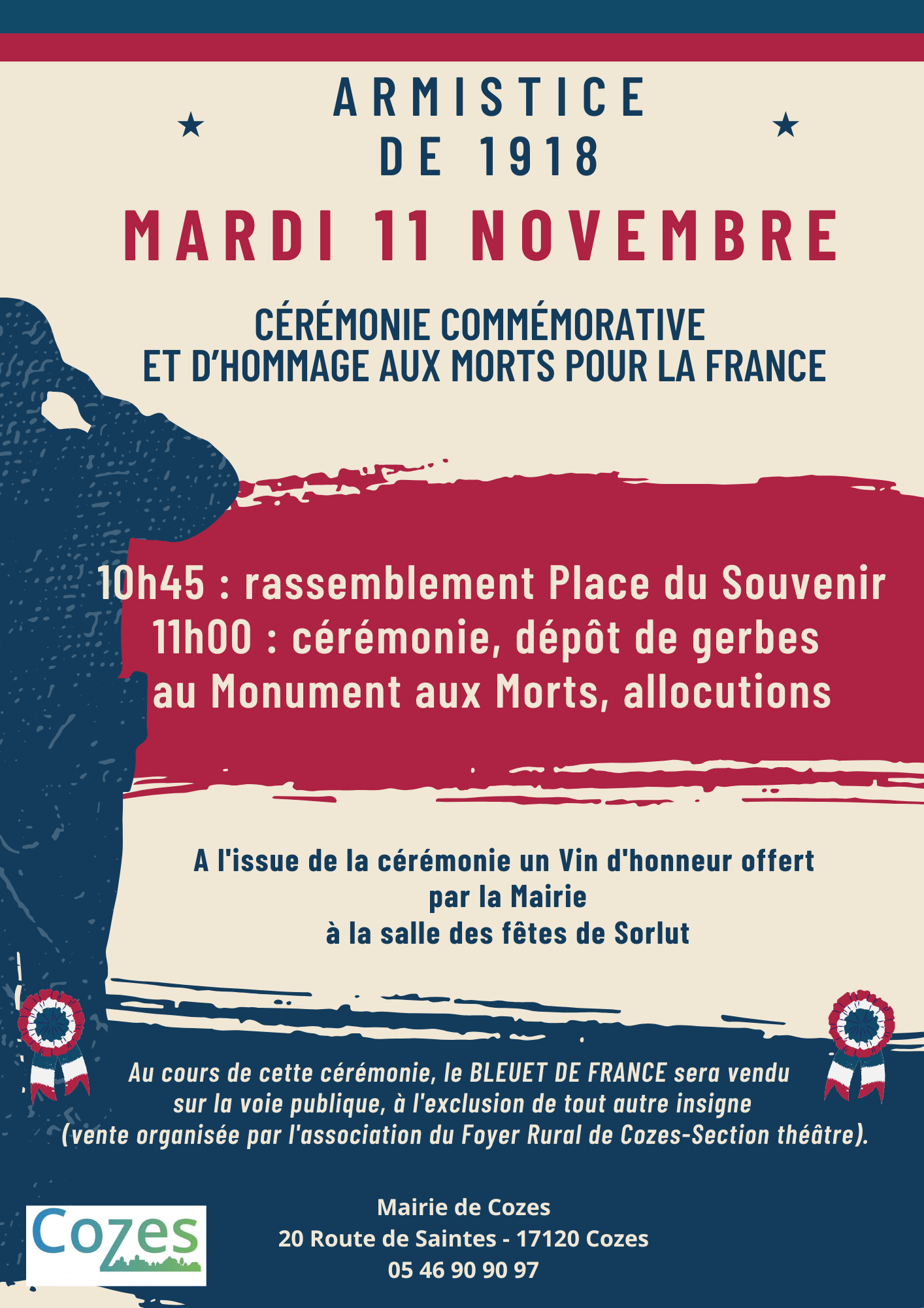 Madame le Maire, et son Conseil Municipal, seraient honorés de vous avoir à leurs côtés pour commémorer l'Armistice le mardi 11 novembre 2025.