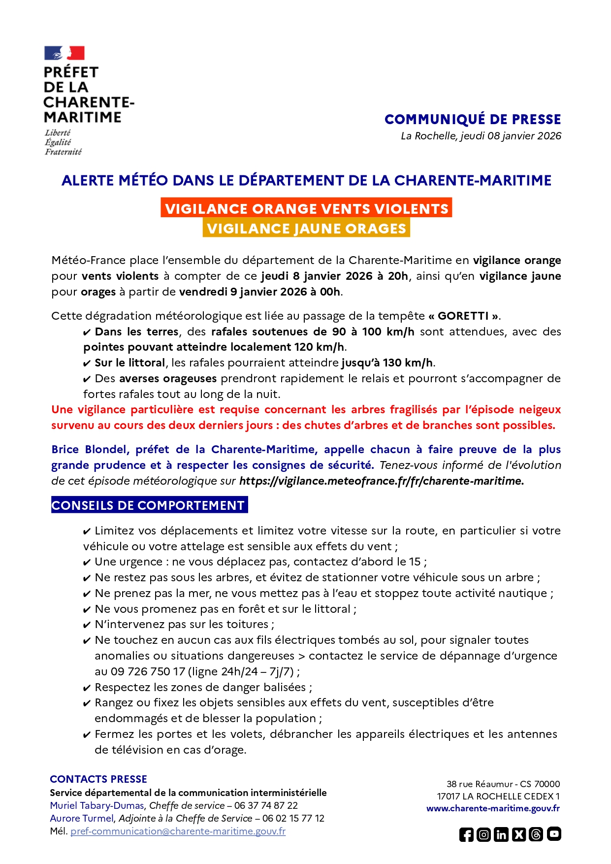 Un communiqué de presse de la Préfecture de la Charente-Maritime nous a été envoyé.
