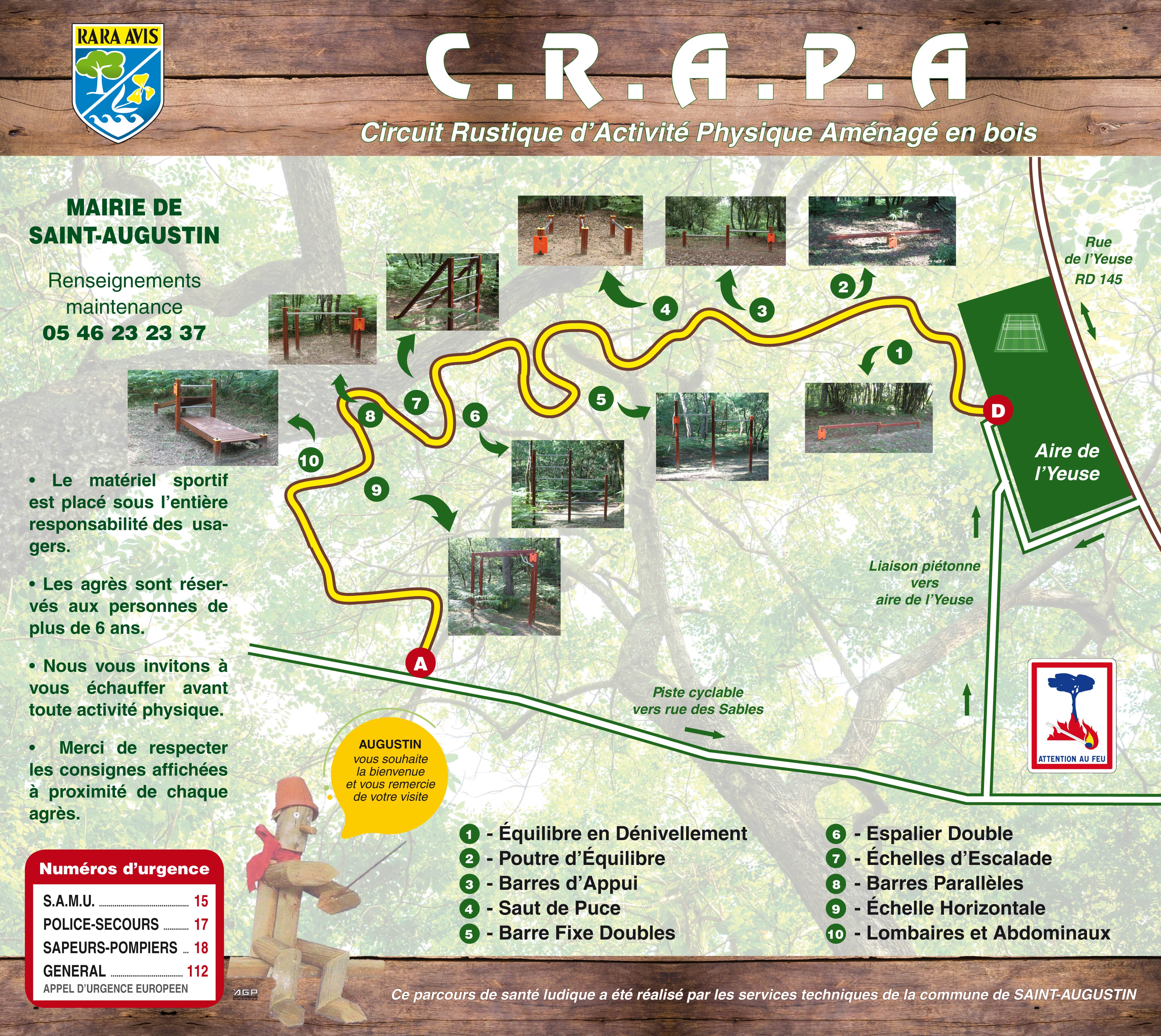 Situé dans la forêt de SAINT-AUGUSTIN, son départ se fait depuis le chemin rural longeant l’Aire de l’Yeuse (Angle rue des Sables et rue de l’Yeuse - RD145), pour se finir sur la piste cyclable « Papéricaud » donnant sur la rue du Marcoulet.